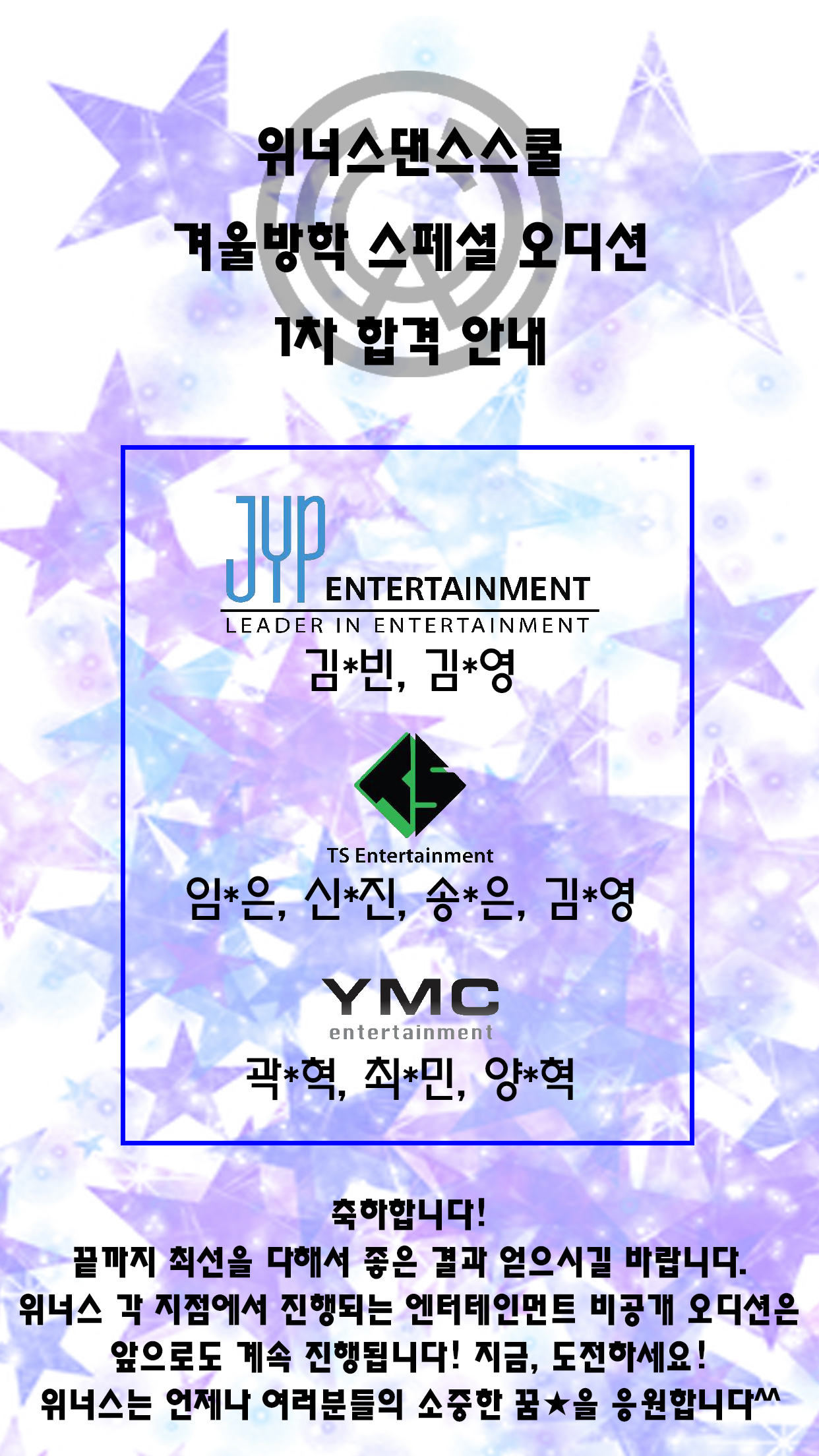 [겨울방학 스페셜 비공개 오디션] 1차 합격자 안내