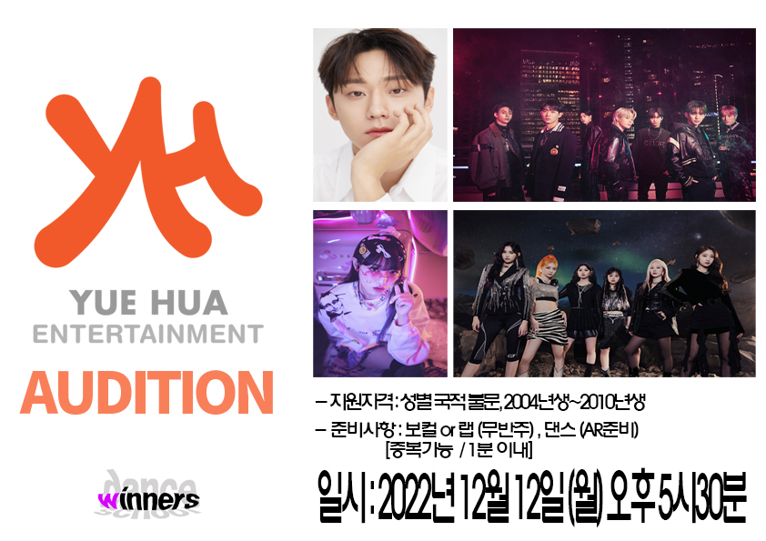 >>위너스댄스학원 WUEHUA entertainment<< 위너스에서 WUEHUA entertainment 비공개 내방오디션이 진행됩니다. 수강생 여러분들의 많은 참여 바랍니다. 신청과 각종 문의는 데스크로 문의해주세요! ☆12월 12일(월) pm 5:30 위너스댄스학원☆ |