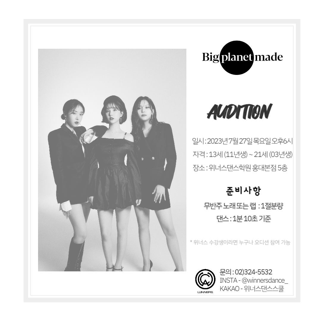 | [위너스댄스학원] 빅플래닛메이드 엔터테인먼트 내방오디션 | |