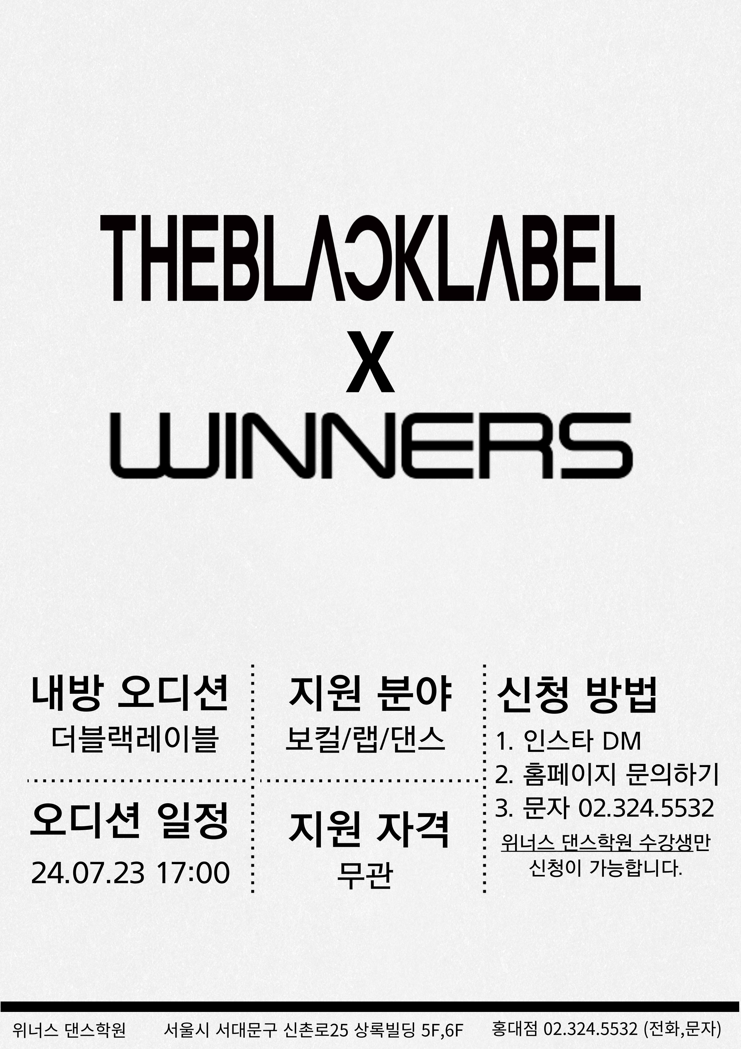 더블랙레이블 내방오디션 안내
