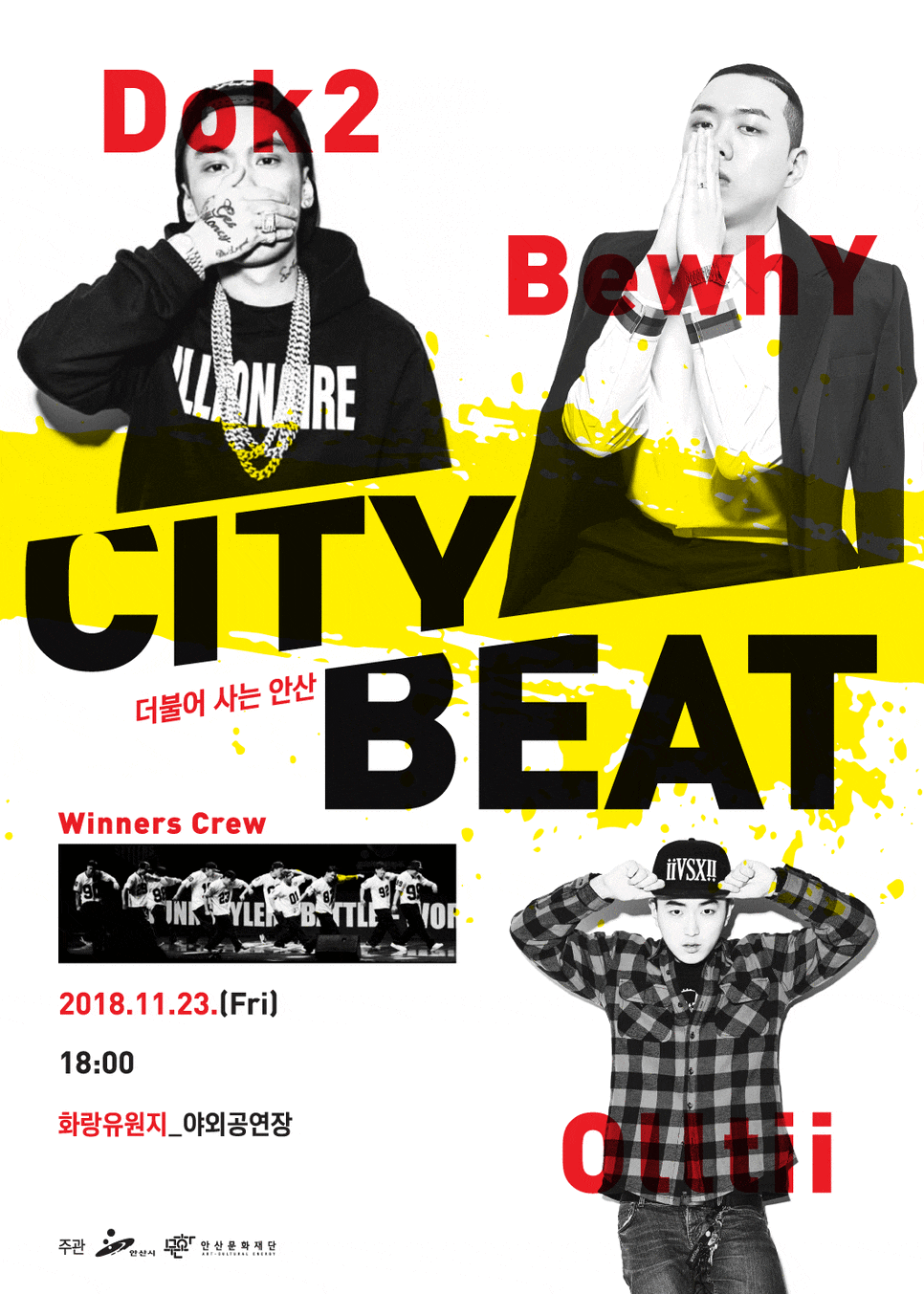 오후 6시부터는 장소를 화랑유원지 내 야외공연장으로 옮겨 뜨거운 열기가 가득한 힙합 콘서트 'City Beat'가 펼쳐집니다. 최근 힙합 음악계의 슈퍼스타로 맹활약 중인 래퍼 '비와이'와 '도끼'를 비롯해 프리스타일랩의 강자 '올티', 그리고 뛰어난 움직임으로 주목받는 '위너스 크루'의 무대가 꾸며집니다. 이번 공연은 무료로 진행되며, 해돋이극장에서 진행되는 강연의 경우 사전 예약시 선착순 300명에 한해서 '추억의 흑백 사진' 촬영 기회를 우선 제공합니다. [출처] 더불어사는 안산, 토크&문화콘서트! 비와이&도끼 출연|작성자 안산시 |